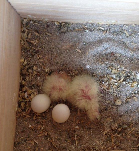 Anfang Juli 2014: Auch bei Coco und Perlchen sind die ersten Küken geschlüpft. Abgabe ab Ende August/Anfang September.