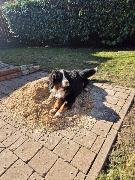 Erst mal das Fundament erschaffen und Bodenplatten verlegen, bevor das Häuschen aufgebaut werden kann. "Bauleiter" Kontrad hat alles im Blick...